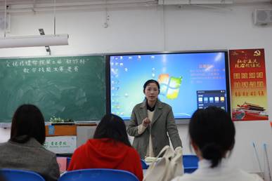 康文老师对本次大赛进行点评时说:“非常高兴能来担任本次比赛的评委,同学们的说课有很多优点,也有一些不足。希望同学们在讲课以前仔细研读文章,有着自己独特的见解和感悟才能上好一堂课,不推荐比对着PPT读,希望同学们努力改进,不断提升自己的教学技能。”