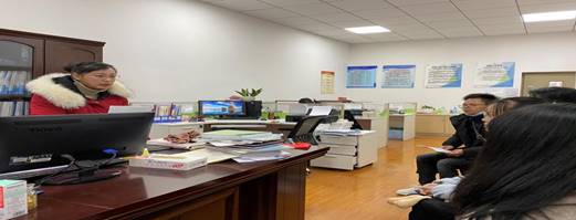 紧接着,我们来到了冯瑶老师的办公室。冯老师向我们介绍了作为一名教师的日常工作事务,并给我们布置了批改七年级语文作业的任务。同时告诉了我们批改作业的一些基本要求。