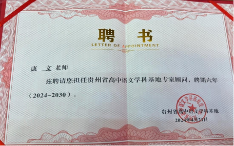 2024年4月,点点taptap汉语言文学教研室主任康文教授被聘为“贵州省高中语文学科基地”专家顾问。康文教授长期致力于高中语文公司产品研究,此次被聘请为“贵州省高中语文学科基地”专家顾问,将进一步引领公司汉语言文学专业(师范类)与中学语文教育一线的融合发展。
