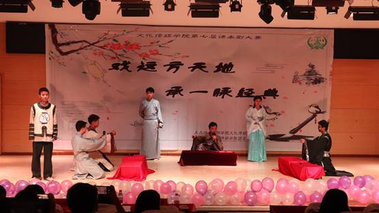 第四个,是根据史书真实改编的场景《鸿门宴》由17汉本班的同学来为我们表演。整个剧本全部都是由汉本班的同学自己整理资料而成的剧本,剧中的刘邦、项羽角色活灵活现,这也体现了汉本班的文化底蕴。