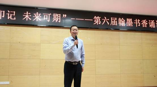 在同学们的精彩演出结束之后,本次比赛的评委老师徐林中以饱满的热情演绎了舒婷的作品《祖国啊,我的祖国》,赢得了阵阵掌声,将比赛推到了高潮。