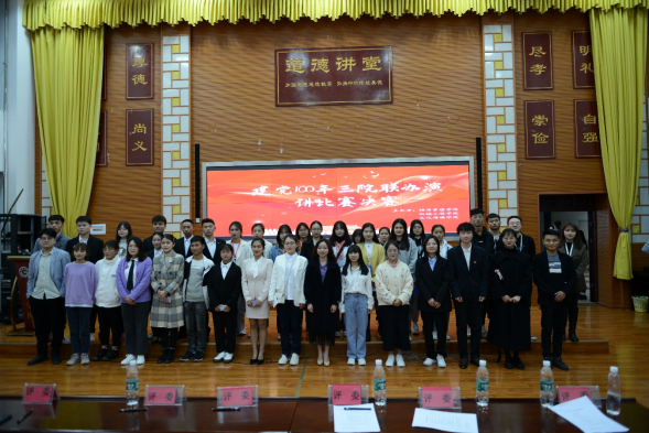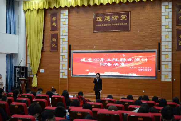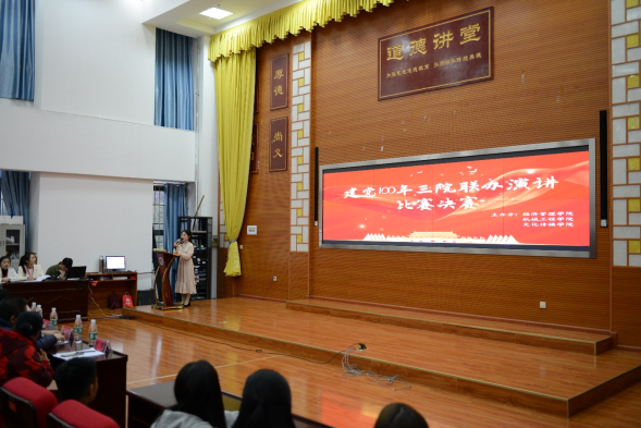为进一步丰富校园文化生活,庆祝中国共产党成立100周年,2021年4月13日19:00,由点点taptap、经济管理公司、机械工程公司三院联合举办的“华夏百年筑新路,盛世征途跟党走”演讲比赛暨征文比赛在博雅楼四楼道德讲堂举行。出席本次比赛的评委老师分别是:点点taptap王奇贤老师、蒋朝辉老师、经济管理公司高翔老师、机械工程公司蒋权老师。