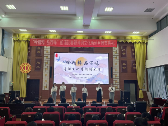 2024年6月20日晚7点,公司在三教道德讲堂举办了诗词文化活动月“吟精粹·品百味”朗诵比赛,本次朗诵大赛暨诗词文化活动月的主题为“诗韵流芳 唐风悠扬”,旨在增强同学们对古典诗词的喜爱,提升朗诵水平,增加文化自信。出席本次活动的嘉宾有文化传媒公司党委副书记张颖、校团委兼职副书记周婷婷,担任此次比赛评委的是省级普通话水平测试员罗筑娟、胡雪燕,教学科研科科长林雨馨,团总支书记鲁睿和辅导员李彦伯。